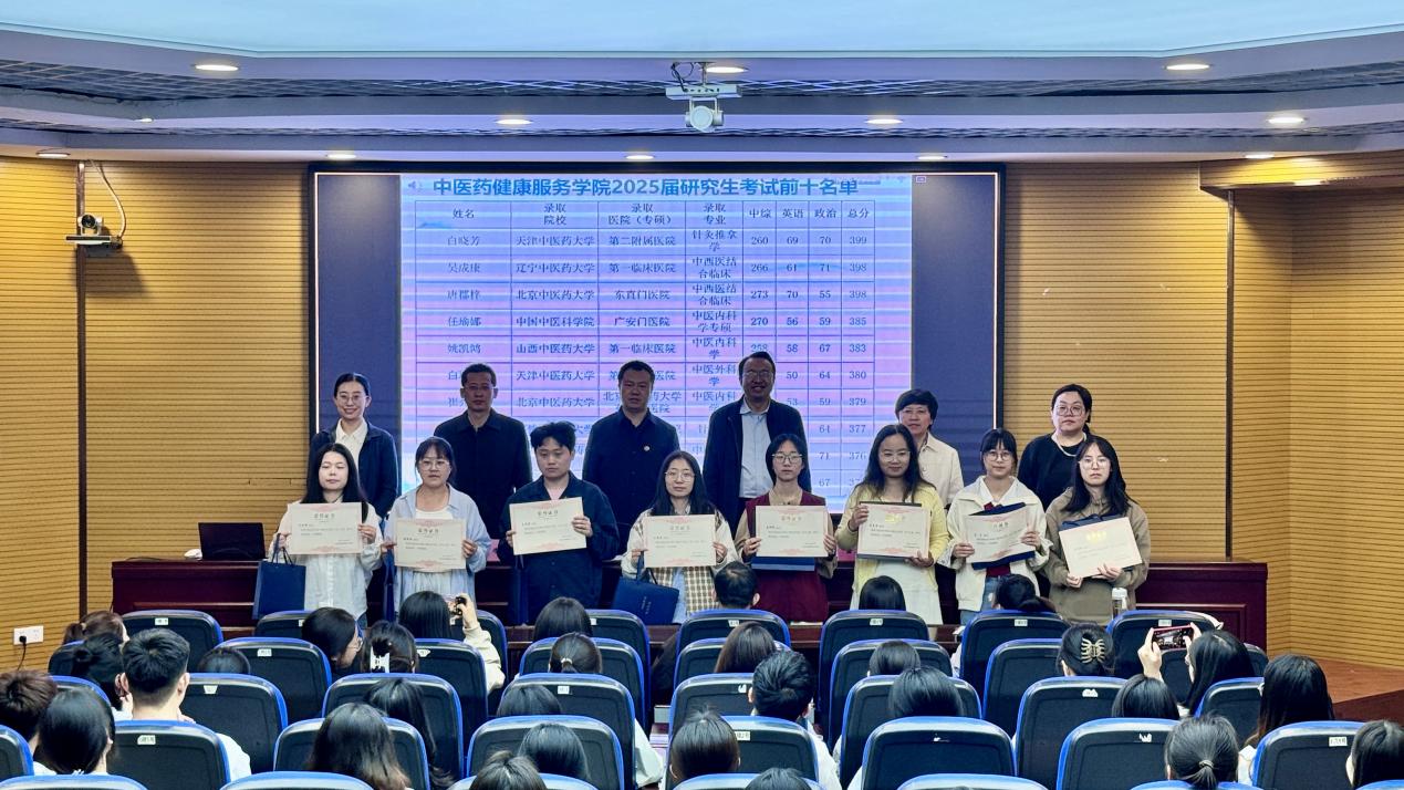 刘斌钰院长首先对2025届考研成功学子及已就业毕业生表示热烈祝贺,并向辛勤付出的教师们致以感谢。他介绍,学院今年考研录取率高达39.8%,65名学子成功升学,录取率稳步提升,稳居全校前列。白振军补充强调,复试是考研成功的关键环节,占比高且综合性强,提醒备考学生务必平衡初、复试准备,深化专业理解,提升表达与应变能力,切勿轻视复试。会上,学院领导为2025年硕士研究生考试成绩前十名的优秀学生代表颁发了荣誉证书。