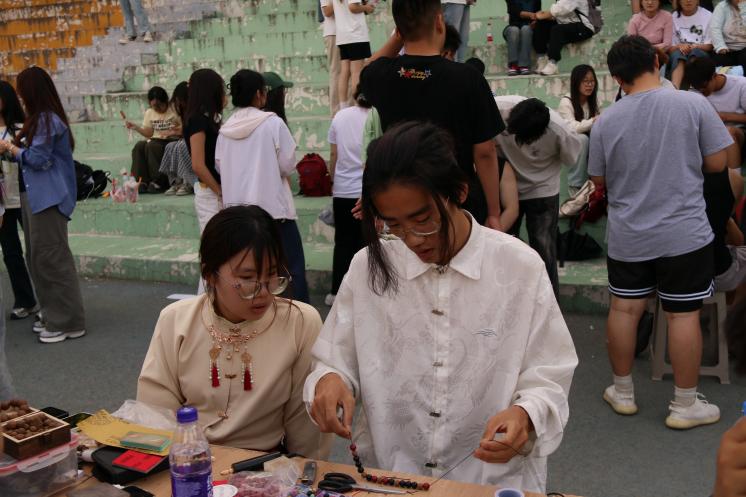 活动现场,我院学子们以中医药学中的“君臣佐使”配伍理论为指导,带领新平旺校区的师生们共同调配丁香、艾叶、檀香等药材。他们不仅展示了将药材搓揉、阴干的古法工序,还将这些传统技艺与现代设计理念相结合,完成手工合香珠制作。