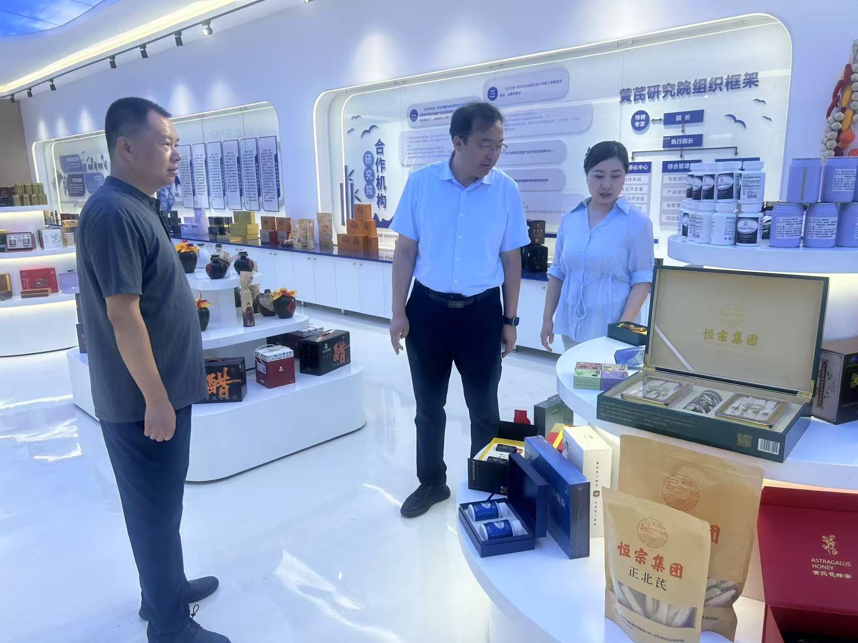 在北方医药有限公司(黄芪产业园)园区走访中,学院一行实地考察了恒宗堂国医馆、黄芪博物馆、黄芪实验中心、黄芪产品展示中心及山西恒宗集团科普馆,系统了解企业黄芪全产业链开发体系,重点调研道地药材种植标准制定、中药材精深加工技术研发及大健康产品创新成果。