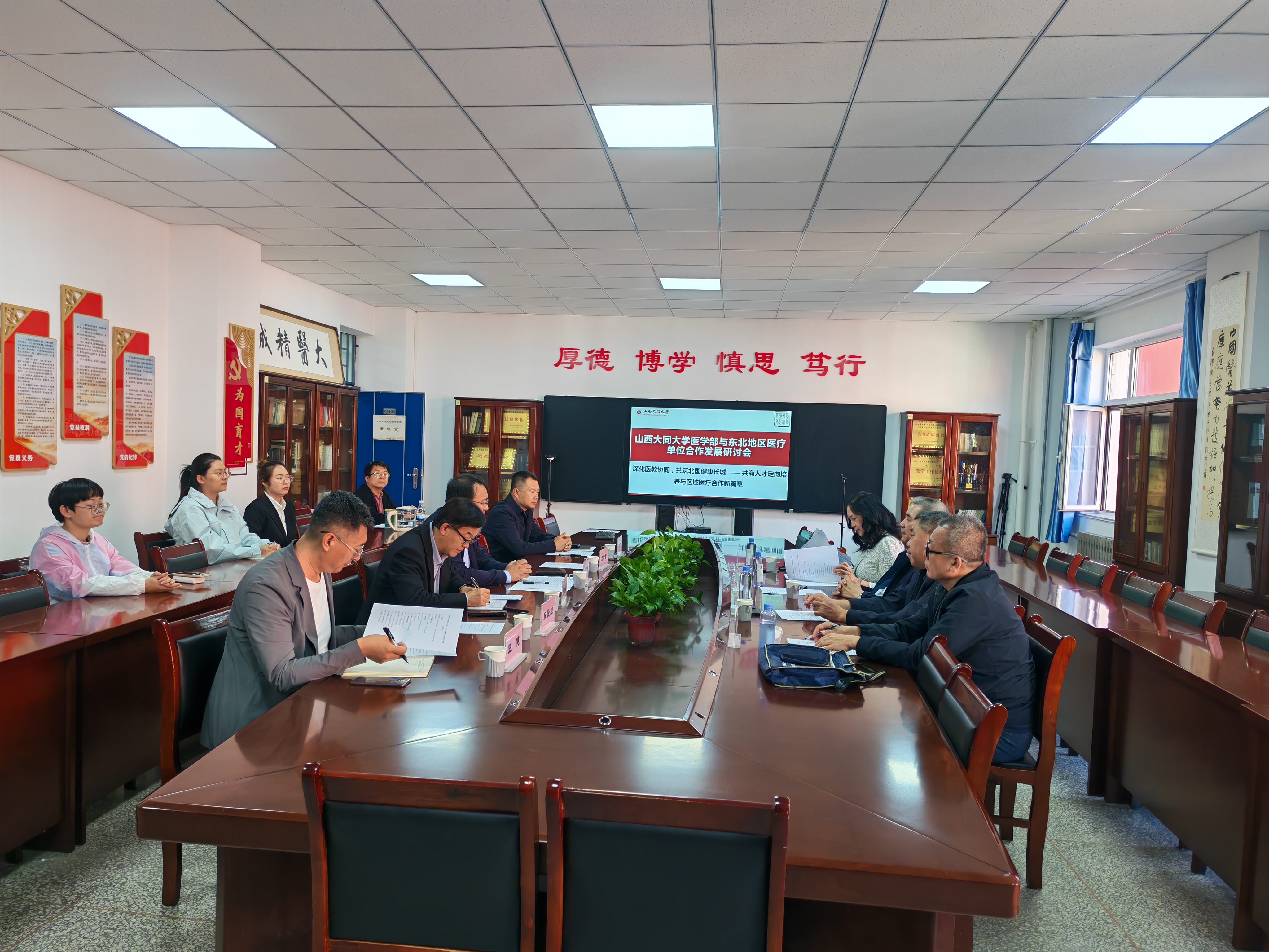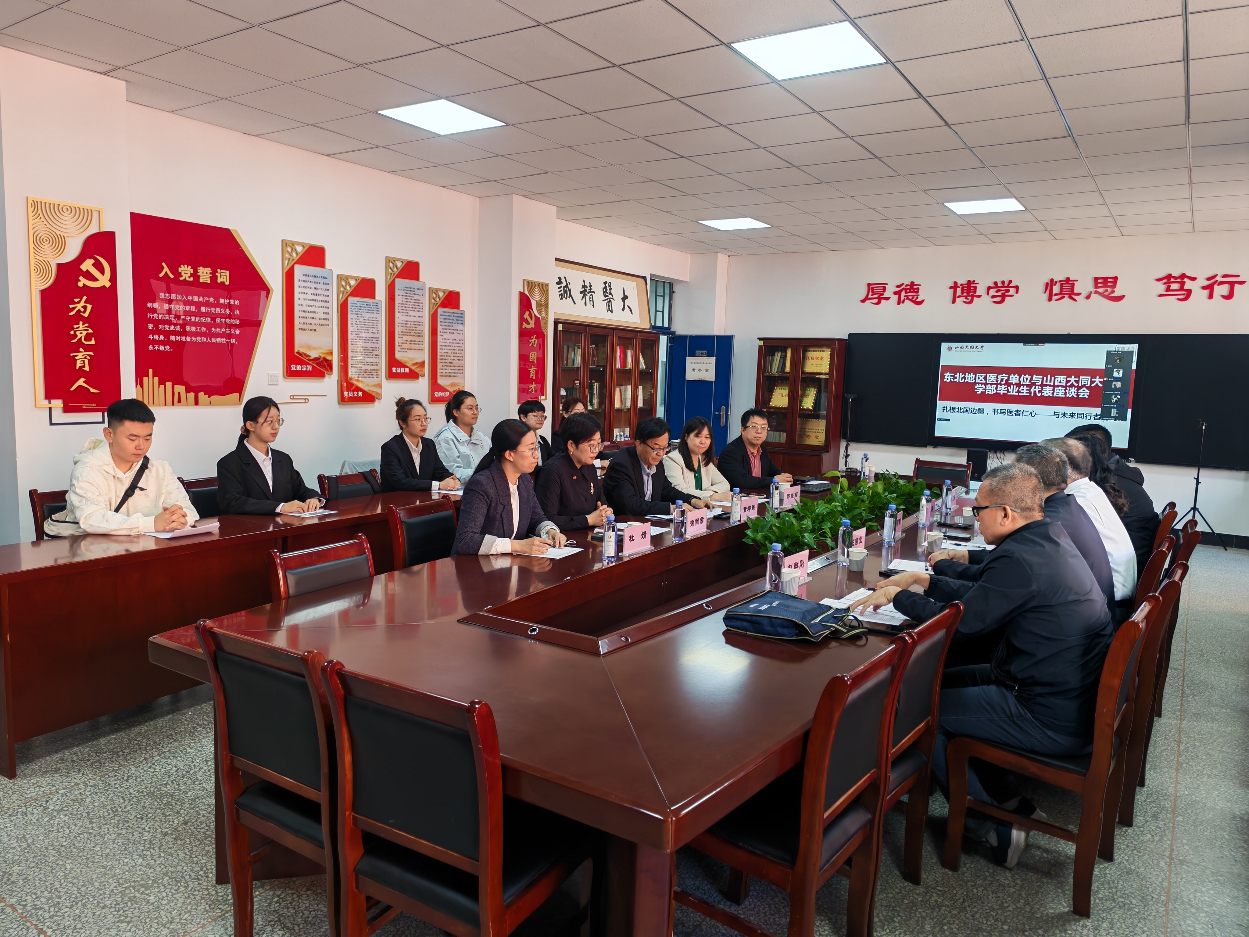 9月24日,我院成功举办以“扎根北国边疆,共筑中医人才高地”为主题的招聘座谈会,来自东北地区多家知名医疗单位(大兴安岭地区医院、呼玛县人民医院及漠河市人民医院等)积极参与。上海交大医学院附属新华医院卞锦国教授特邀作为嘉宾,医学部常务副主任、学院院长刘斌钰,学院党委负责人白振军出席本次会议,中医学院师生代表参加本次招聘座谈会。
