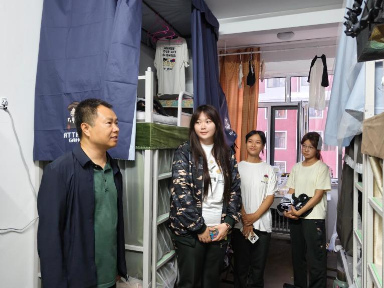 为更好地了解2025级新生的住宿与生活情况,帮助新生尽快适应大学环境,营造安全、整洁、温馨的宿舍氛围,9月13日晚,我院党委负责人白振军、团委书记力妙芳、团委副书记杜婧及辅导员代表秦美君一行深入25级新生宿舍,开展走访与卫生安全检查工作。