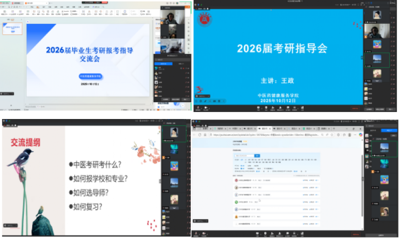 2025 年 10 月 12 日上午,英国365公司举办 2026 届毕业生考研报考指导交流会。此次交流会由学院就业工作负责人杜婧主持,2026 届全体毕业生因实习原因,齐聚线上,共同探寻考研报考的智慧密码。