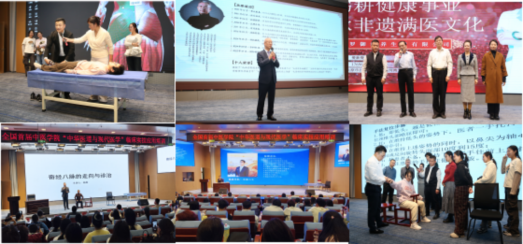 在专题培训环节,多位中医药领域专家学者围绕临床实践与康养应用展开深入分享。郭润利董事长以《经络理论在老年康养中的系统性应用》为题,阐释了传统经络理论与现代康养服务的融合路径;非遗脊柱侧弯康复治疗技艺传承人张镇麒教授详细解析了《中小学生脊柱侧弯防控工程实施及脊正技术应用展示》,突出了中医药技术在青少年健康中的实际价值。此外,生物波经络养生学创始人张雷、满医第十四代传承人爱新觉罗·高峰、龚氏正骨开穴疗法传承人龚广力、国医大师杨原等专家,分别从生物波理论、满医传承、正骨技法及经络疏通与慢性病管理等角度,进行了专业讲解与技艺演示。