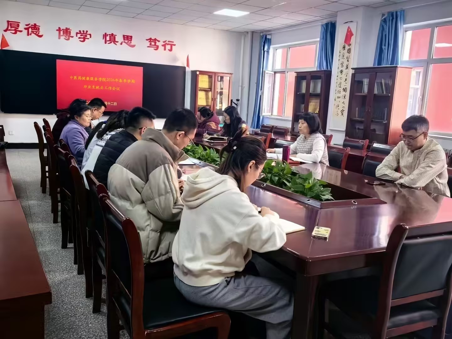 会上,董文华紧密结合当下严峻复杂的就业形势,强调就业工作关乎每一位毕业生的未来发展,关乎无数家庭的幸福安宁,责任重于泰山。全院上下务必牢固树立“就业优先、服务至上”的坚定理念,将毕业生就业工作置于学院工作的核心位置,作为当前工作的重中之重。她进一步指出,当下正值毕业生求职的关键阶段,就业市场风云变幻,各类挑战与机遇并存。毕业班级和必须时刻保持高度敏锐,将就业这根弦绷得紧紧的,坚决摒弃消极等待和敷衍了事的思想,切实把就业责任扛在肩上,落实到具体行动中,确保就业工作无疏漏、无死角。针对下一阶段的毕业生就业工作,董文华提出要求:一要提高政治站位,强化责任担当。全体学工干部要主动深入毕业生群体,与毕业生面对面交流,精准把握毕业生的就业意向、求职困惑和实际需求,做到守土有责、守土尽责,为毕业生的就业之路排忧解难。二要聚焦重点领域,开展全面帮扶。围绕简历制作、面试技巧、职业规划、行业认知等关键环节,开展针对性的就业指导和培训,为毕业生提供全方位的就业支持。建立详细的就业困难毕业生台账,明确帮扶责任人和帮扶措施,确保每一位就业困难毕业生都能得到及时有效的帮助。三要健全长效机制,形成就业合力。充分发挥辅导员、班主任、专业教师的联动作用,持续强化与现有合作企业的沟通交流与协作配合,积极主动开拓新的企业合作关系,构建起全员参与、全过程覆盖、全方位保障的就业工作格局,为毕业生创造更多的就业机会。