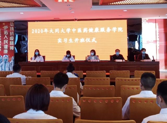 董文华在致辞中指出,每位学生必须严格遵守医院各项规章制度,服从老师的各项安排,尊重老师,虚心求教。通过此次实习经历,让自己成长为更优秀的中医人。张瑞丽强调,在做好个人防护的前提下,必须严格按照带教老师的要求,完成各项实习任务。赵雁华为学生们详细解读了大同市中医院2020实习管理规定。