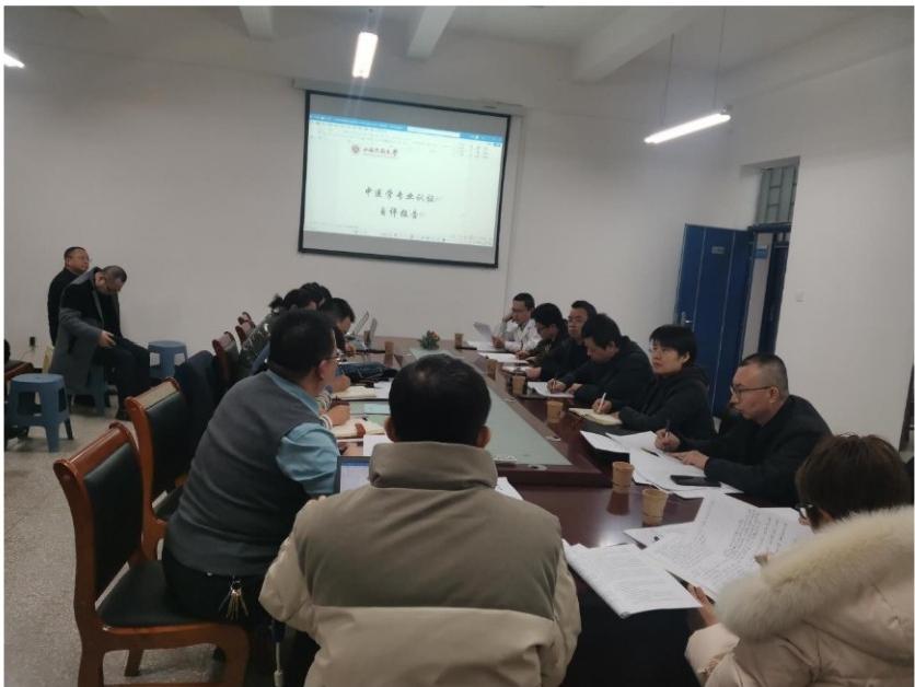 白振军介绍了学院中医学专业认证进展情况及遇到的问题,中医学专业认证任务分解各组组长分别介绍了各自任务的完成情况及存在的问题,需要进一步努力的方向。教学质量监控与督导中心副主任彭喜保指出了自评报告和支撑材料中存在的问题,并提出了整改的方案。