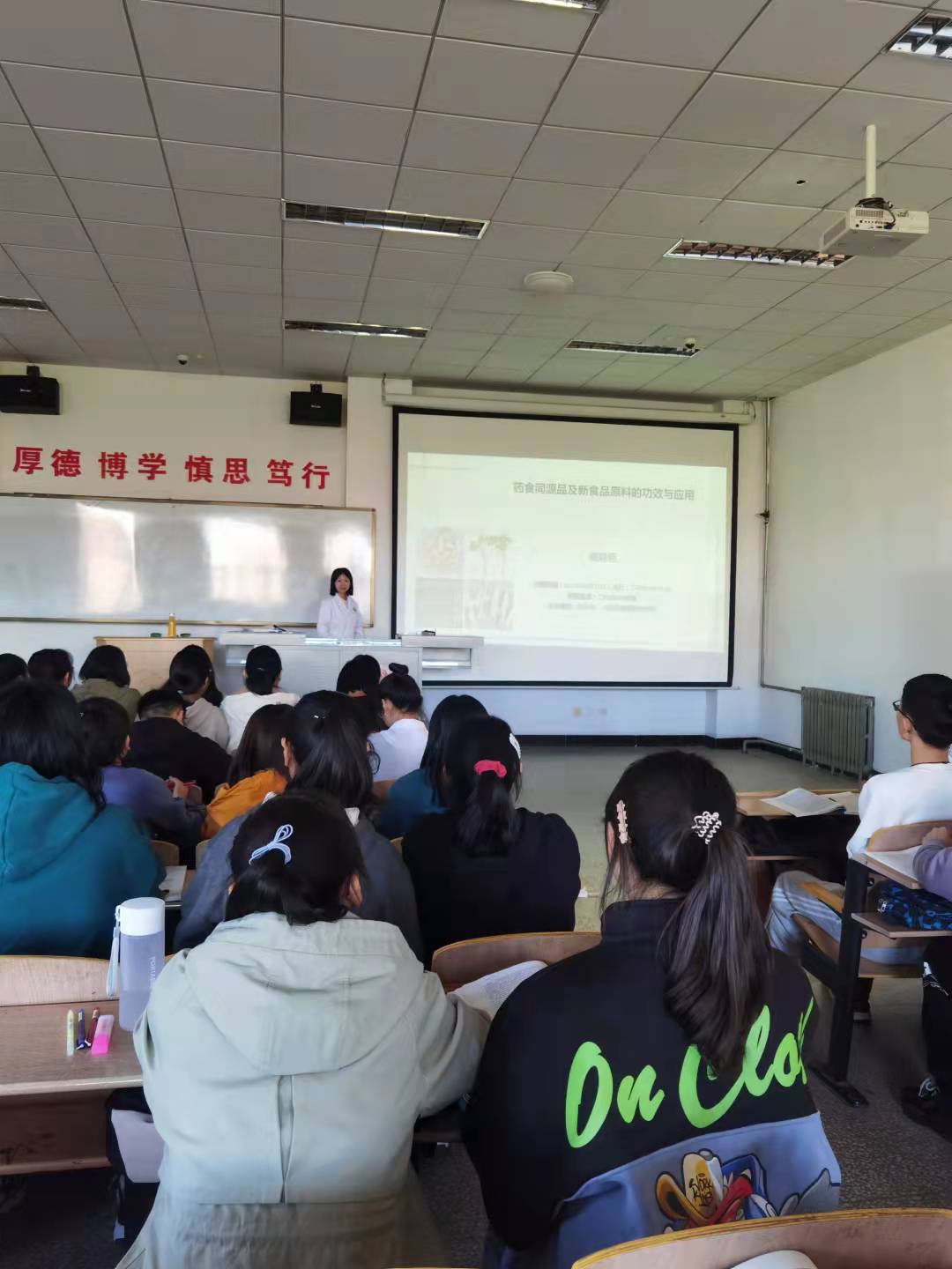 夏晓艳博士结合21世纪的大健康时代背景——人类不断追求“生得优、活得长、不得病、少得病、病得晚、提高生命质量、走得安”倡导健康的生活方式,提倡“治未病”的理念,减少亚健康,对日常保健中遇到的药食同源品及新食品原料进行了介绍。让师生日常生活中遇到的药食同源品及新食品原料的功效及用法得以了解,从而对师生在日常保健中起到积极的推动作用。