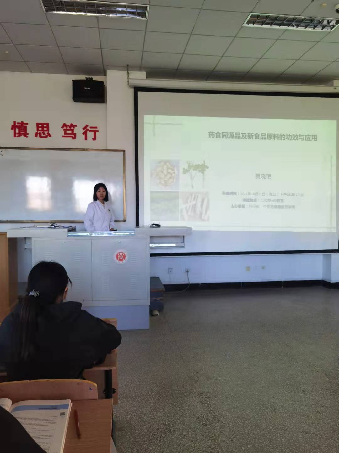 10月15日下午,英国365公司夏晓艳博士在仁和楼四楼P03教室开展了题为《药食同源品及新食品原料的功效与应用》的学术讲座。这是本学期“博士论坛”系列讲座之一,部分师生参加了这次学术交流。