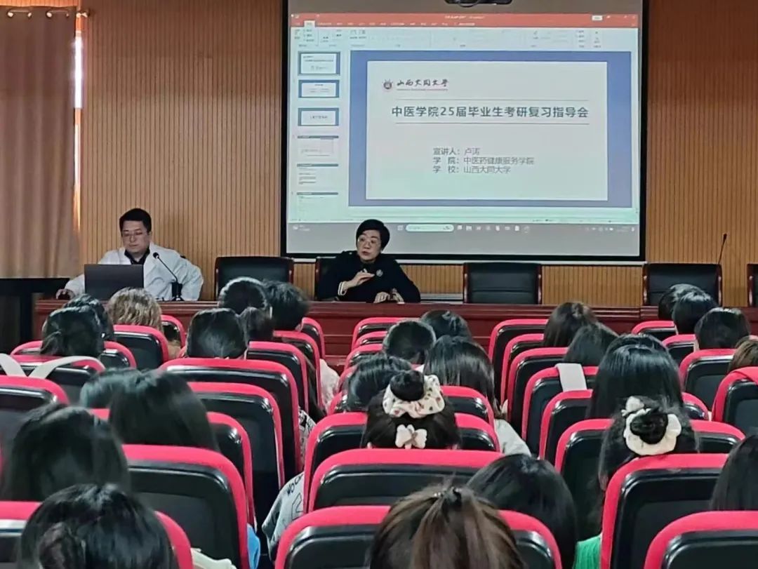 卢涛老师从考研趋势、考研必要性和如何择校等方面进行了详细介绍,鼓励学生们早做准备、科学备战,合理选择目标院校。随后,他通过自己的考研经验,对中医综合、英语以及政治的复习重点和复习方法进行了分享,并在考研资料及课程的选择方面提出了自己的建议,引导学生制定高效的学习计划。接着,他从复试资料的准备、面试着装等方面分享了提高复试成功率的方法。