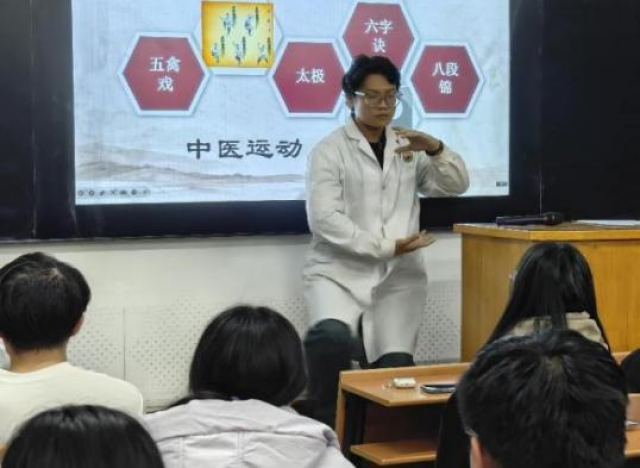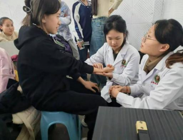 “人之体态,肥瘦有别,实则气血盈亏、脏腑功能之映射。吾辈医者,循古法,采百草,调和气血,疏通经络,使人体阴阳平衡,自然轻盈……”弓如月同学首先为大家介绍了中医减肥的基本知识。随后,刘佳豪同学总结了中医减肥之疗法与其相关禁忌。在讲到中医减肥运动时孟泉宇为我们演示了太极。最后是众多同学都期待的实操环节,活动现场,同学们体验把脉与推拿,体会三指即知晓病痛之“神”;感受双手拂过酸痛尽散的“舒”,品尝中医学子们亲手调制的药茶,感受中医养生的独特魅力。一位同学在体验完推拿与把脉后感慨:“中医真是太神奇了!它不仅让我恢复了自信,更让我学会了如何关爱自己的身体,如何与自然和谐共处。”