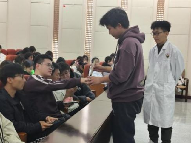 首先,陈佳佳同学从整体观念、五脏、气血等方面向同学们介绍了中医美容的基本原理,使同学们对中医美容有了一个全新且深刻的理解。她详细阐述了针灸和艾灸在美容方面的应用,为解决美白、减肥、黑眼圈等问题提供了有效的方案。此外,厉鹏飞同学邀请台下观众亲身体验艾灸,使同学们直观地感受到艾灸对人体的益处,从而激发了同学们的兴趣和热情。