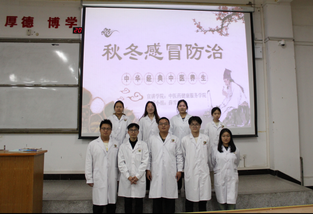 秋冬季节,气温的剧烈变化使得感冒频生。张秀媚同学与黄彩虹同学两人从中医感冒的发展历程着手,先后讲解了中医对感冒的认识、特点、日常预防方法以及治疗方法四个方面,令医学院的同学们从中医角度对感冒有了进一步的认识,了解到风寒感冒和风热感冒的区别与基本预防措施,学会了简单的感冒治疗方法。