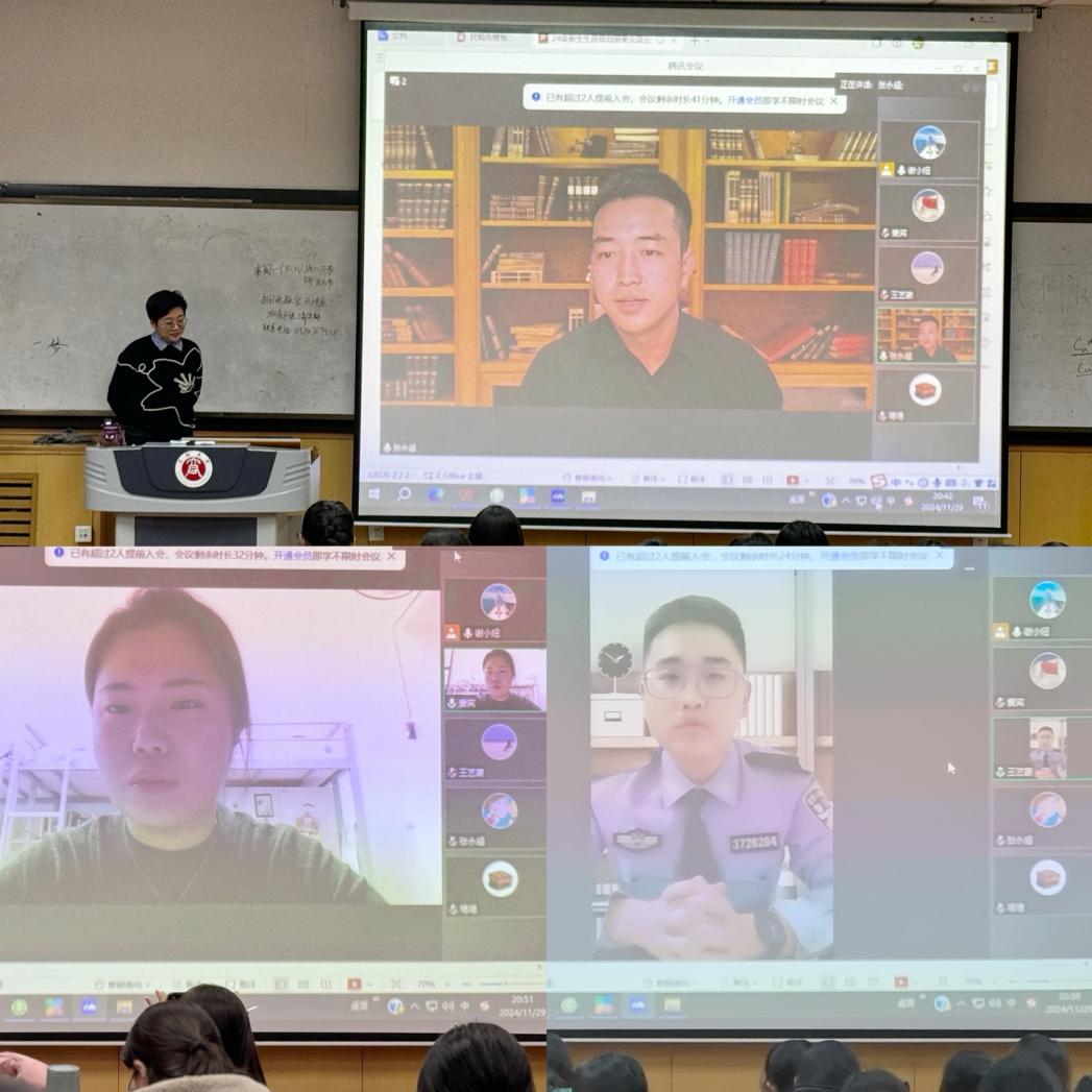 会议伊始,现就读于上海中医药大学附属曙光医院肿瘤研究所的17级毕业生张永超,向同学们分享了读研期间的临床实践经历。通过亲身经历,告诫同学们大学期间掌握扎实的基础知识是日后临床实践的基石。现就读于山西中医药大学中医妇科学专业的19级毕业生吴曼,不仅和同学们交流了大学期间的学习经验,还分享了担任班干部、参加社团活动和暑期实践活动的心得体会,鼓励同学们大学期间,积极探索、积极尝试,寻找自己感兴趣的发展方向。现就职于山东省任城监狱政治处的19级王艺豪告诫同学们,大学是个美好的乌托邦,也是跨入社会前重要的转折点,同学们需要提前接触社会,才能认清社会。