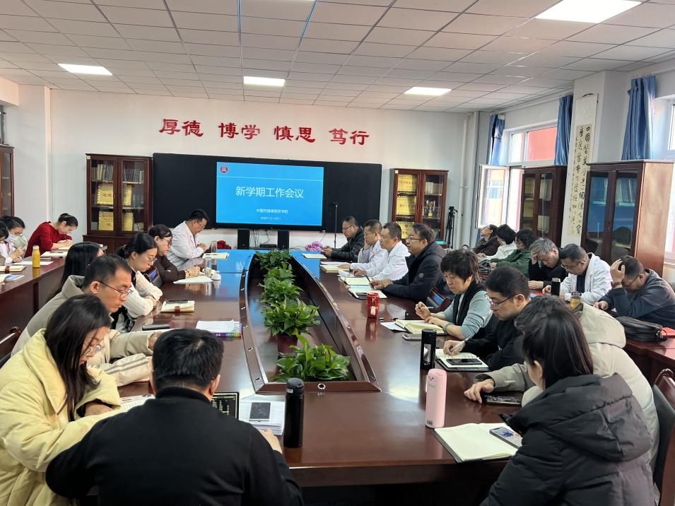会议伊始,白振军传达了校党委关于刘斌钰同志担任学院院长的任命决定。 随后,刘斌钰围绕学院发展目标,从五个方面对新学期重点工作进行了全面部署,一是加强党建引领,深入学习贯彻党的二十大和二十届二中、三中全会精神,推动党建与业务工作深度融合,凝心聚力,推动各项工作落地生根。二是推进门氏杂病流派工作室的创建,以工作室为依托延伸中医师承、学术研究、社会服务等功能;三是深化教育教学,以专业认证和本科教学审核评估为抓手,规范各个教学环节,加大实践教学,推进人工智能与教育教学深度融合,不断提升人才培养质量。四是提升学院科研能力,以本次国自然申报为背景,凝练科研方向,形成有组织的科研,同时与我省医药企业等展开合作,加大横向项目的立项力度,争取在高水平科研项目和成果方面取得突破,促进学科的发展。五是加强社会服务,学院要继续发挥好中医药特色和优势,为我校师生提供优质的中医服务。