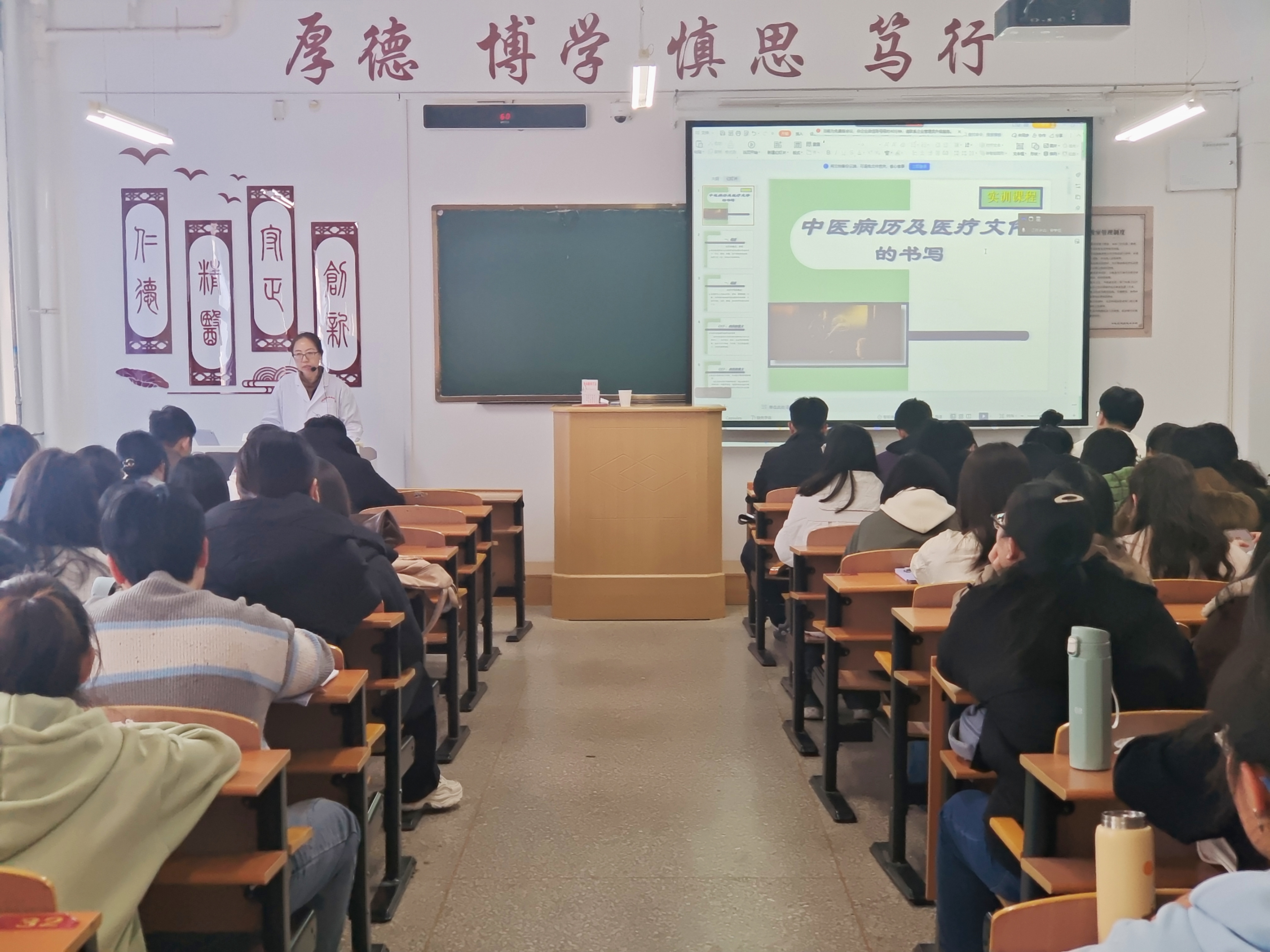 孟燕老师凭借自身深厚的专业知识积淀与丰富的教学实践经验,深入浅出地讲解病案书写核心要点。一方面,强调病案内容的完整性,大到病症的演变过程、治疗方案的全程记录,小到患者的基本信息、既往病史,任何细节都不容遗漏;诊断的准确性更是重中之重,不仅要精准判断病情,还要有充分的依据作为支撑,无论是实验室检查结果、影像学报告,还是中医的望闻问切四诊合参,都要条理清晰地体现在病案之中。另一方面,对于书写细节同样严格要求,如笔墨颜色务必统一规范,确保病案的正式性与严肃性;医学术语的运用更是要精准到位,杜绝口语化、模糊化表达,力求专业、严谨。