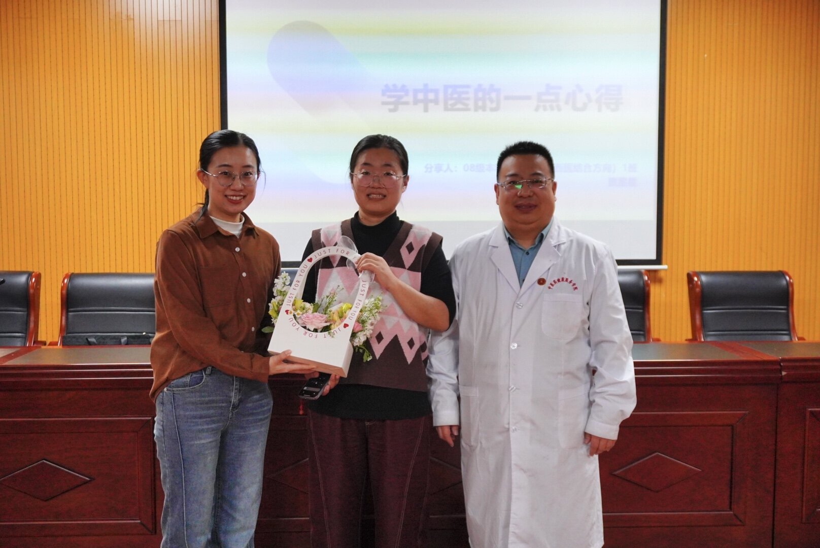 分享伊始,贾星星抛出一连串直击心灵的问题,引导同学们思考自己与中医专业的关联。她询问同学们的专业选择是否出于主动,对专业的了解程度,以及是否真正热爱中医。让在场同学陷入沉思,也为后续的深入交流埋下伏笔。