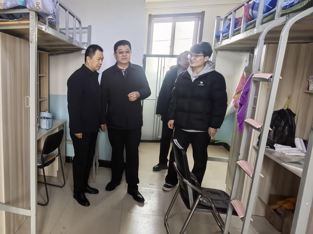 调研结束后,马轶明副校长专程看望了我校在院实习的学生,实地查看了学生住宿条件。在与学生亲切交流时,他叮嘱大家要增强安全防范意识,并就实习、考研、就业等方面遇到的困惑给予了针对性地指导和建议。