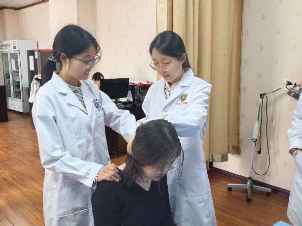 四楼的针灸推拿实训室中,中医学院志愿者们通过推、拿、按、揉中医特色疗法,定位穴位,帮助同学们放松紧绷的肌肉,疏通堵塞的经络。体验结束,同学们对中医的神奇疗效赞叹不已,不少同学还表示,这次义诊让他们对中医产生了浓厚的兴趣。