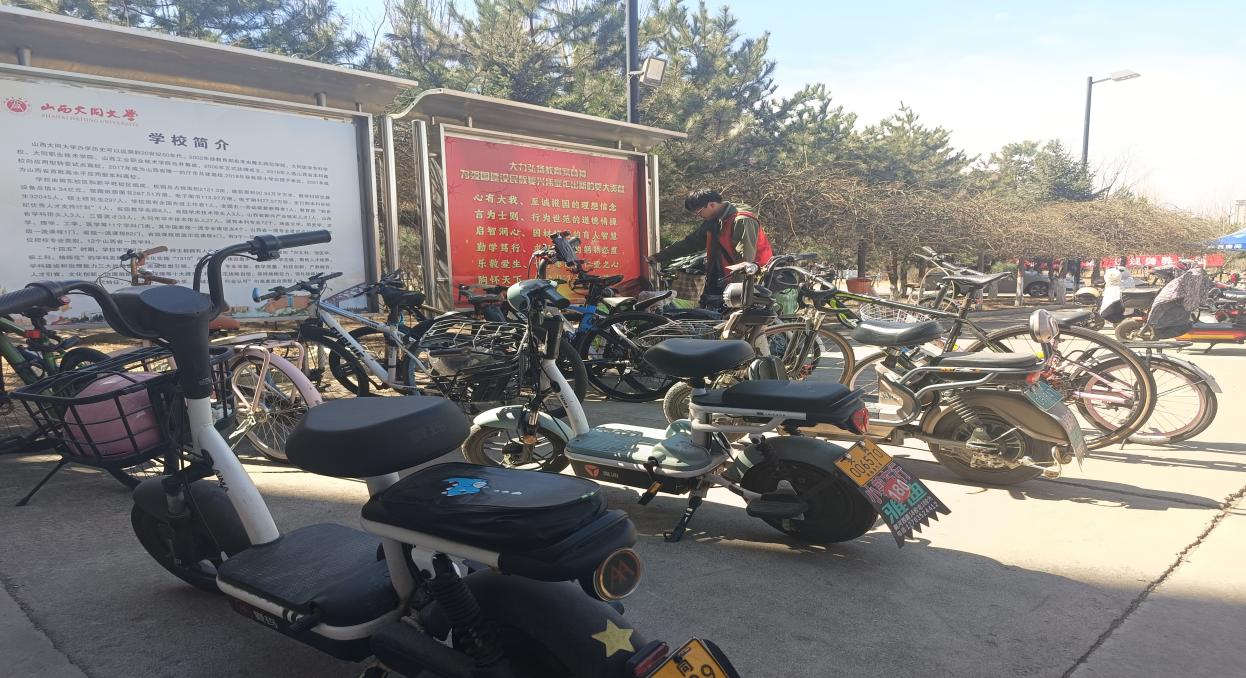 2025年3月25日,沙尘大风天气席卷而来,校园里一片狼藉。中校区仁和楼门口,自行车、电动车在狂风肆虐下纷纷“折腰”,横七竖八地倒在地上,既影响通行,又存在安全隐患。
