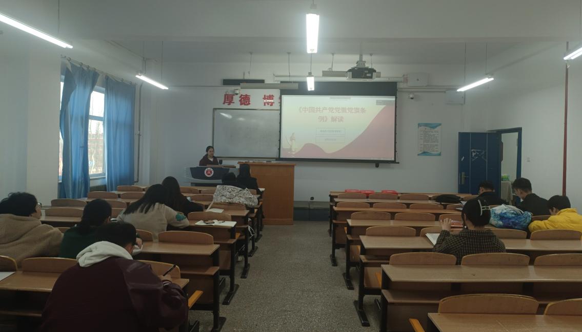 靳玮杰对《中国共产党党徽党旗条例》进行解读,从五个方面逐一剖析,不仅点明了党员对党徽党旗的维护责任,更呼吁党员同志们要积极参与讨论和交流,将条例精神融入实践应用与宣传之中。靳玮杰同志号召党员青年们要持续学习与提升,不断增强党的意识和党性修养,为党的事业贡献自己的全部力量。